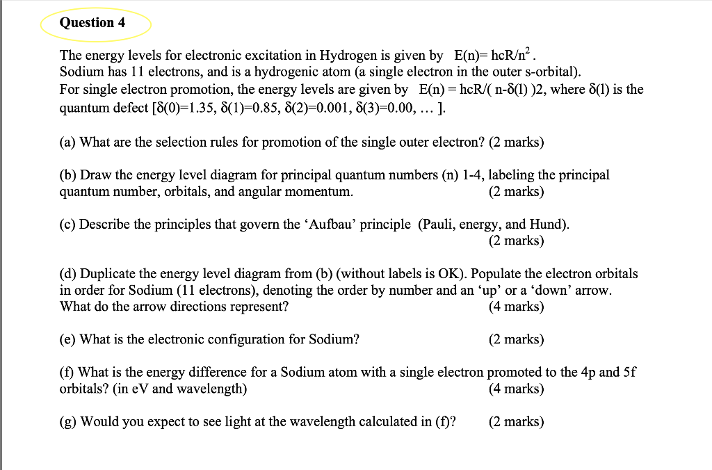 Question 4 The Energy Levels For Electronic Excita Chegg Com 2003 Ford Explorer Fuse Diagram