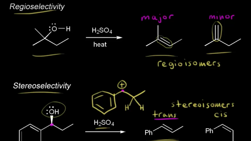 Stereochemistry of e1 and e2 reactions for an e1 reaction an intermediate carbocation is formed and so the stereochemistry of the starting material will not determine the stereochemistry of the final product. The slow step is unimolecularinvolving only the alkyl halide. The products formed though will favor having the two bulky group on the opposites side of the double bond the e alkene.