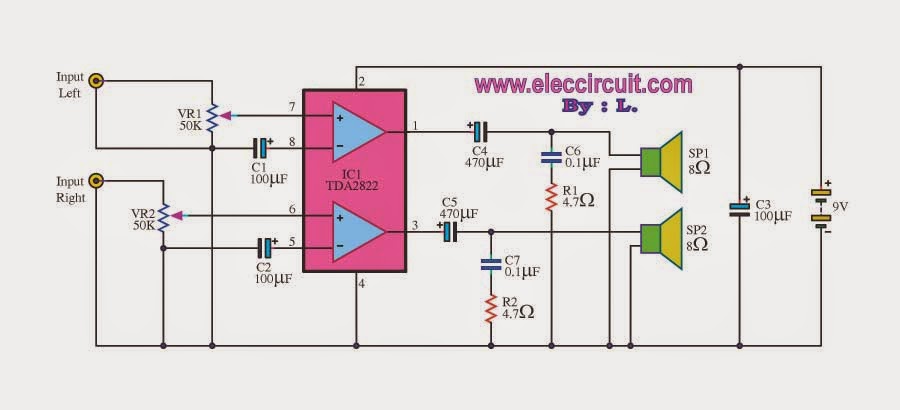 - Circuit Electronica Stereo Audio Amplifier Using Tda 2822