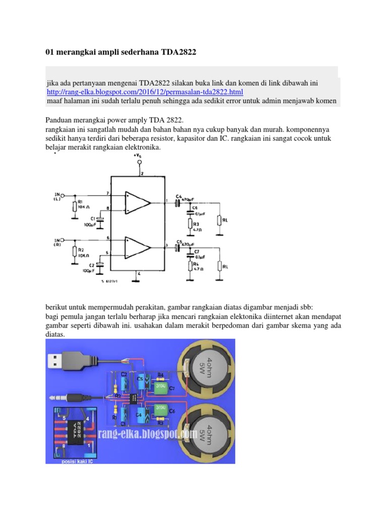 01 Merangkai Ampli Sederhana Tda2822 Docx 2015 Ford F250 Fuse Box Diagram