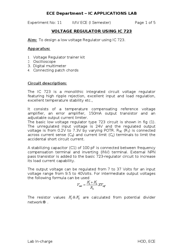 Exp 11 Voltage Regulator Using Ic 723 Electronic Circuits Electromagnetism Venn Diagram Rubric