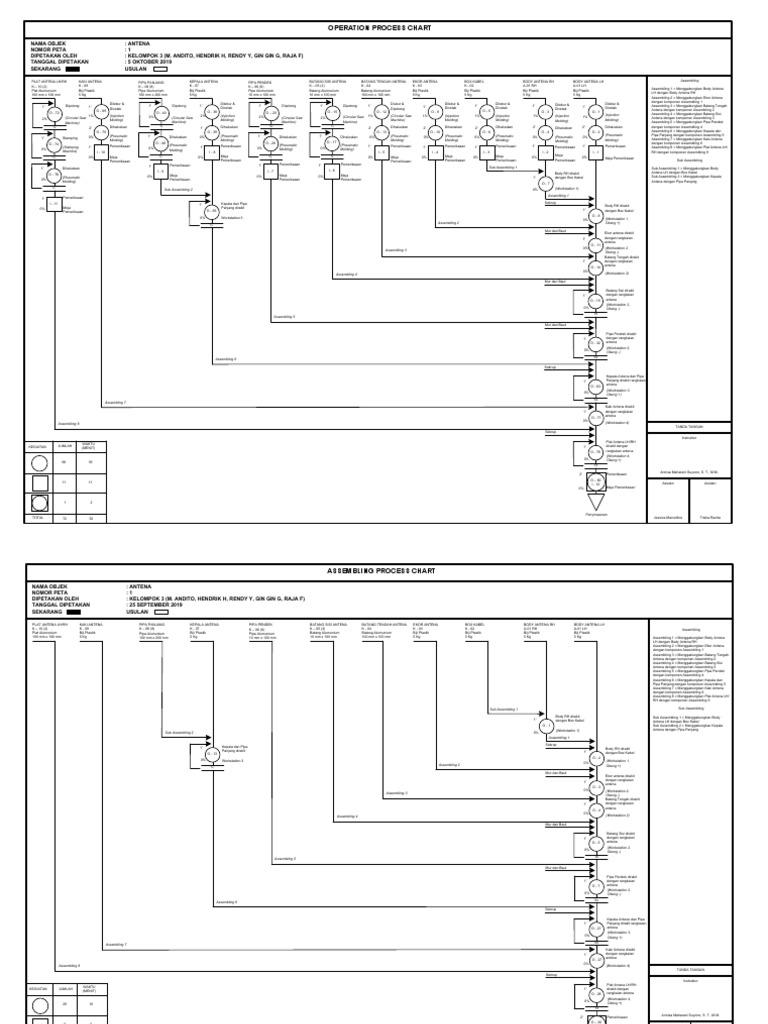 An operation process chart opc represents the sequence of operations to be performed on a component. Assembly and the overall structure of the product. Pada pembuatan assembly chart sering terjadi berbagai kesalahan yaitu kesalahan penulisan fastener maupun kesalahan penyusunan sub assembly.