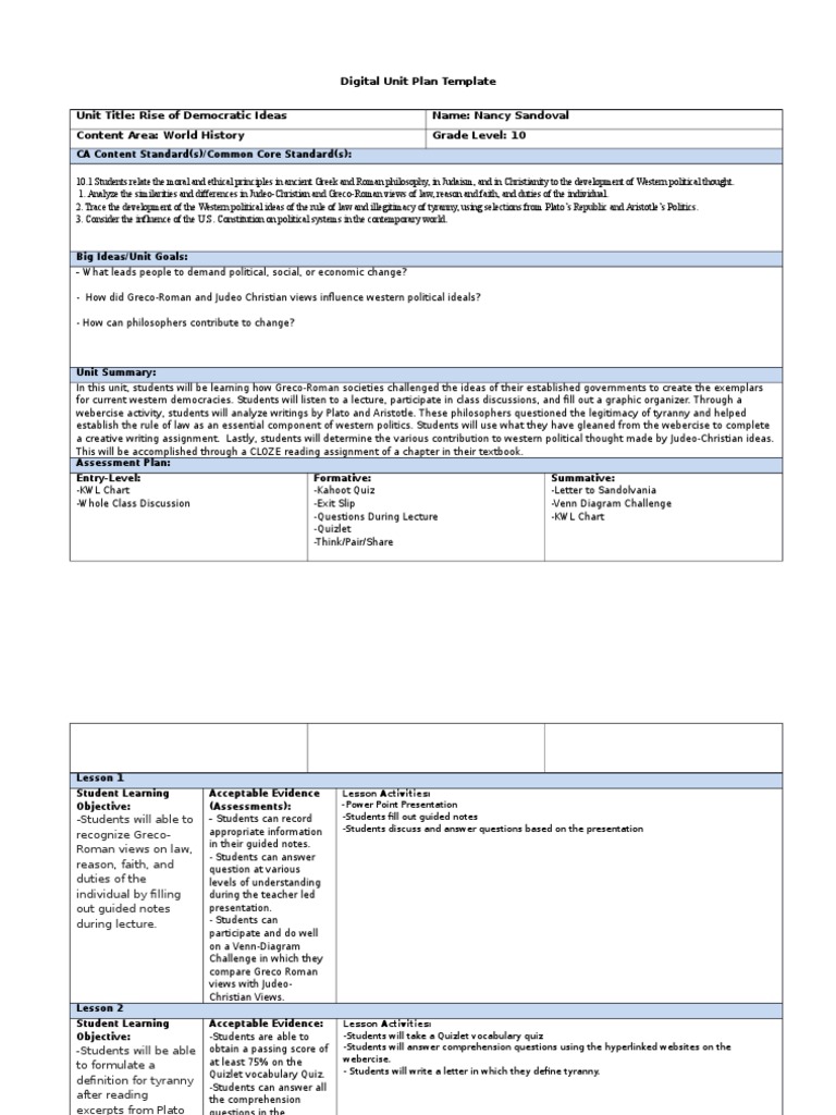 - Digital Unit Plan Template 304 Reading Comprehension Plato