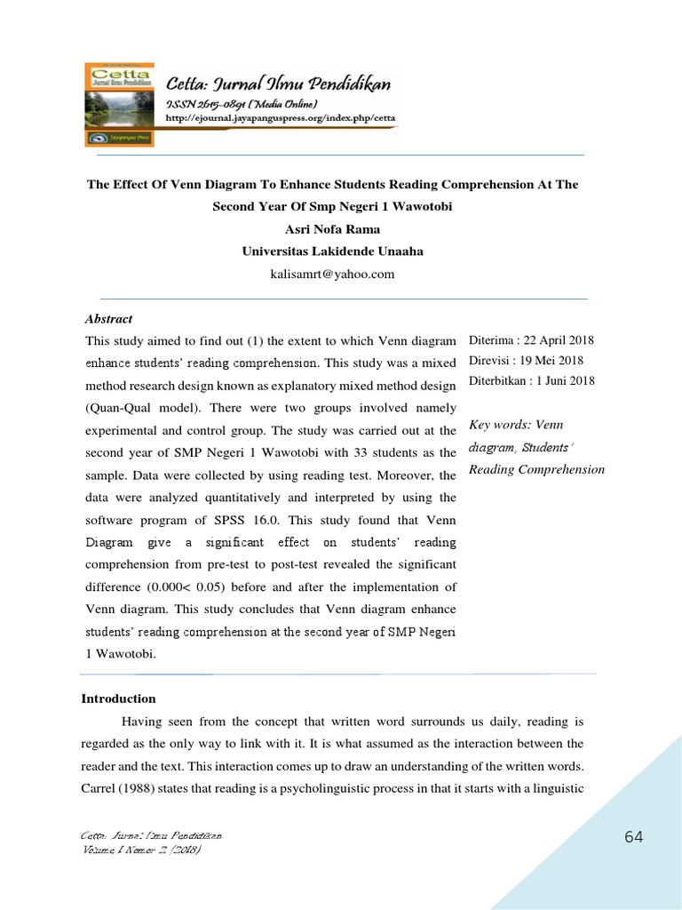 - The Effect Of Venn Diagram To Enhance Students Reading Comprehension At The Second Year Of Smp Negeri 1 Wawotobi Asri Nofa Rama Universitas Lakidende Unaaha Effect Size Student S T Test Drawing Mo Diagrams,