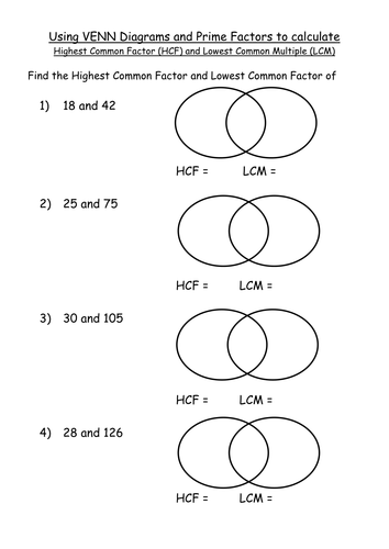 Maths Ks4 Worksheet Hcf And Lcm Venn Diagram Pfd Teaching Resources Honda Element Fuse Box Diagram