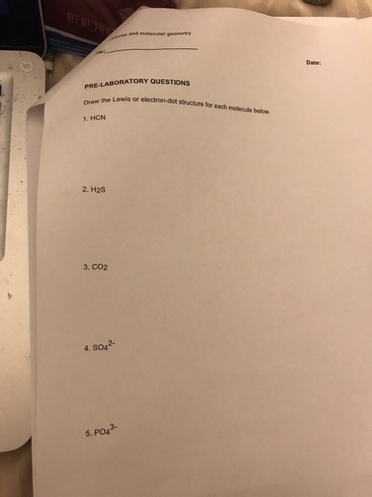 Solved And Molecular Geometry Date Pre Laboratory Questi Chegg Com Toyota Quantum Fuse Box Diagram